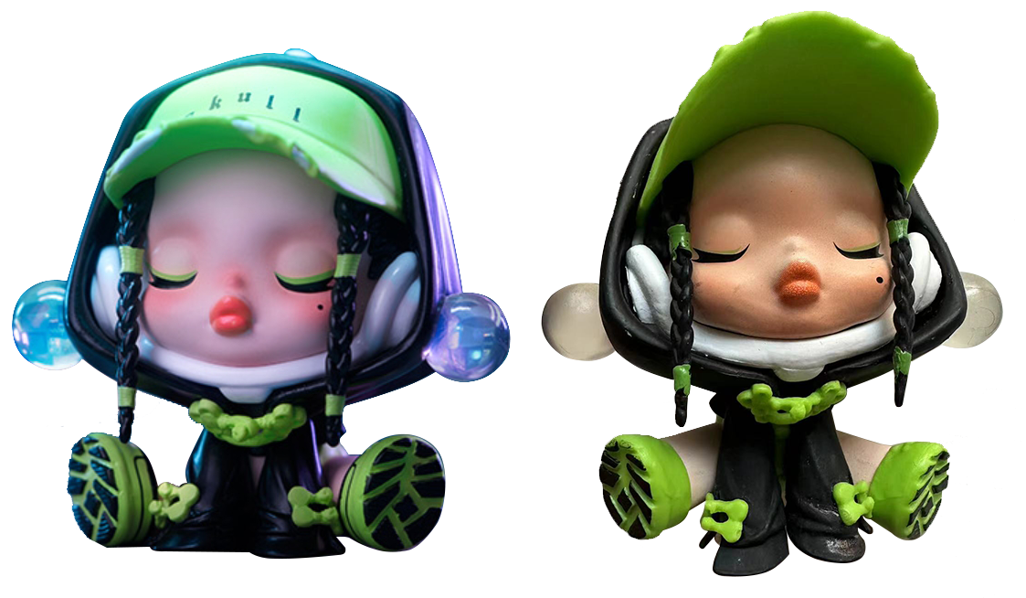 在制假窝点,犯罪嫌疑人利用劣质材料塑模铸型,使用刺鼻的劣质油漆涂抹上色,最后印上仿制的商标,一个劣质的山寨“潮玩”就诞生了。